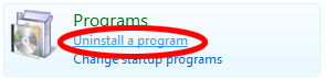 - U Control Panelu kliknite na Uninstall a Program kao na sljedećoj slici.