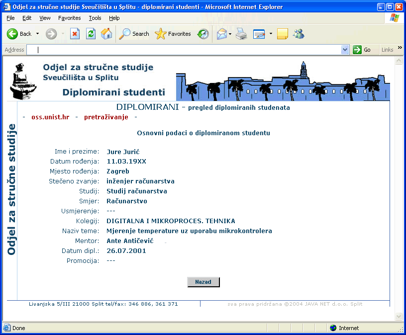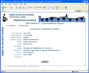 Referada je program koji u potpunosti obuhvaća administrativne poslove studentske službe. Osnovna baza podataka se struktuira ovisno o potrebama visokog učilišta, a sukladno s Pravilnikom o popisu s dokumentacijom o studentima (“Narodne novine” br. 96/93. i 48/95.). Ukoliko visoko učilište posjeduje podatke u digitalnom formatu moguće je organizirati prebacivanje tih podataka. Program podržava rad između više udaljenih nastavnih centara. Administraciju sustava, korisnika i pridodjeljivanja prava uz sigurnosne mjere provodi osoba s posebnim pravima. Na taj način se određuje koji od korisnika i s kakvim pravima može pristupiti bazi podataka ili nekom njenom dijelu. Npr. može biti definiran korisnik koji ima samo pravo izdavanja potvrda (uvjerenja). Kroz program je omogućena potpuna kontrola upisa studenata u prvu i više godine uz kontrolu uvjeta za upis (npr. položenih predmeta). U svakom trenutku je moguć uvid u stanje upisanih studenata. Ovaj program omogućuje i vođenje prijelaza studenata između studija kao i priznavanje kolegija položenih na drugim visokim učilištima. Formiranje nastavnih planova obavlja osoba s odgovarajućim pravima, a postupak je moguće Omogućeno je izdavanje potvrda od strane djelatnika studentske službe ili putem studomata prema unaprijed definiranim ograničenjima u broju i svrsi potvrda koje se mogu dobiti tim putem. Program vodi potpunu evidenciju izdanih potvrda (broj, svrha, vrijeme izdavanja, student, ...). Vođenje ispita, ispis ispitnih lista, prijavnica, unos ocjena te statistika održanih ispita ključni je dio ovog programa. Pravo na pristup ovom dijelu programa imaju samo djelatnici s posebnim pravima, uz provedene sigurnosne mjere i provjeru točnosti podataka. Program vodi potpunu evidenciju svih predmeta, profesora, studija, smjerova i usmjerenja uz mogućnost ažuriranja istih. Uz dogovor o potrebama visokog učilišta i obliku obrazaca moguć je ispis raznih izvještaja, matičnih i upisnih listova, statistika upisanih studenata, najboljih studenata... |